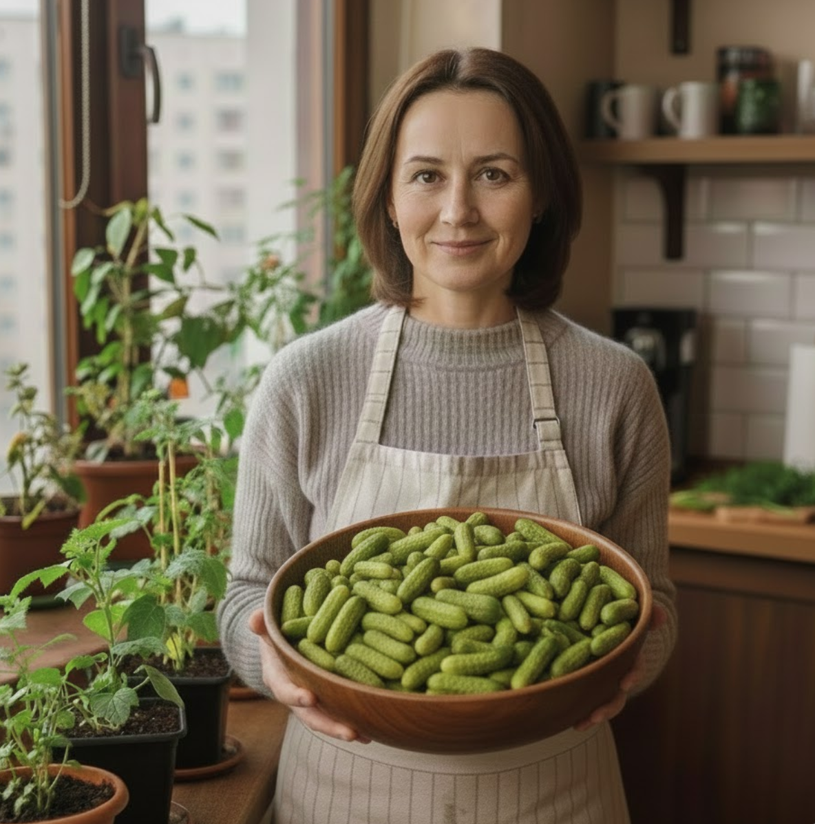 «Я перепробувала багато чого, але саме “Голілео” поводиться так, ніби створений для підвіконня: компактний кущ, а огірочків — як гірлянди», — усміхається господарка.