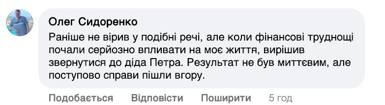 — Ні, я ніколи не брав і не братиму грошей за молитви та обряди. Це мій дар, і я його дарую людям. Єдине, що потрібно – це свічка для обряду. Свічку можна отримати за символічну плату, яка покриває витрати на віск. Також  ці гроші йдуть на те, щоб покрити витрати на відправку, оскільки моїм рідним доводиться їздити до найближчого міста. Та ви самі по ціні бачите, що про «вигоду» тут нічого казати. Сам обряд – він безкоштовний. І для мене це головне.