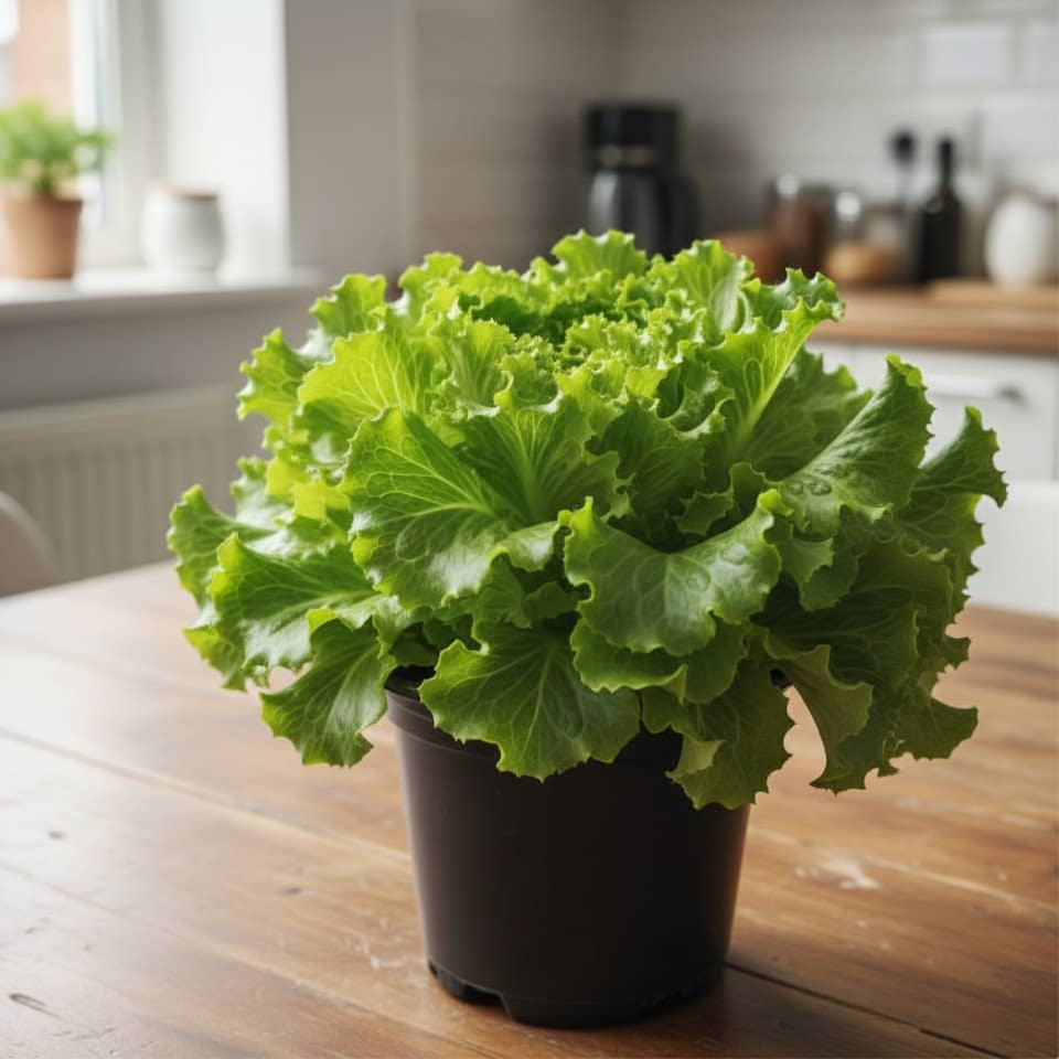 Домашній салат набагато соковитіший, ніж магазинний. Дає красиві хрусткі листочки, які можна зрізати частинами — і рослина відновлюється. Ідеально росте на підвіконні, навіть у півтіні. З нього виходить ідеальна основа для салатів, сендвічів та легких страв.